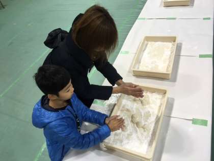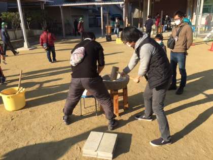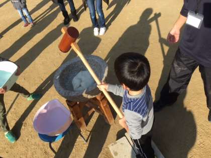 校庭で、もちつき大会が行われました。お父さんや地域の方々がつく様子を見て、低・中・高学年の順についていきました。蒸したもち米が押しつぶされて、滑らかなもちになっていく様子がよくわかりました。出来あがったもちは、体育館で丸めて、いただきました。つきたてのおもちは、柔らかく、とってもおいしかったです。子どもたちの満足した笑顔が見られました。朝早くから、準備等お手伝いいただきましたPTA、地域のみな様、ありがとうございました。