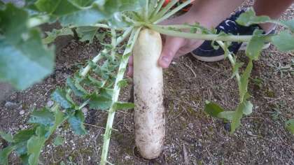 今日の栽培委員会の活動の中で、2学期に学習園で育てていた「だいこん」を収穫しました。