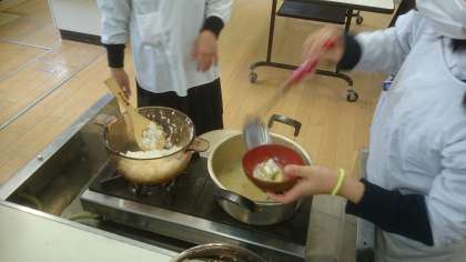 『ごはん と みそ汁』をチームで協力して美味しく作ることができました。明日1組が行う予定にしているので、また様子を紹介します。