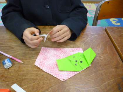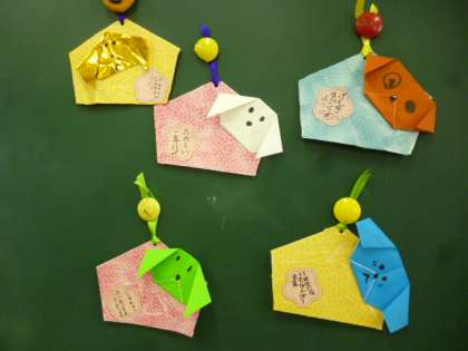 先週に引き続き絵馬を作りました。願い事を書き、折り紙で折った犬をはりつけ、完成です。その後、あゆみ畑で育てていた大根を収穫し、おうちに持って帰りました。みんなとてもうれしそうにしていました。