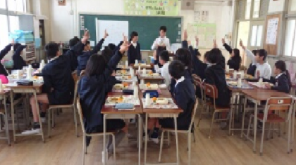 6年3組の給食時間の様子です。今日は皆が大好きなカレーでした。おかわりをする児童もたくさんいました。
