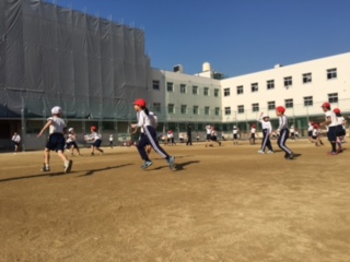 2年生の体育の様子です。鬼ごっこで運動場を元気いっぱい走り回る姿や、ボール運動を楽しむ姿が見られました。