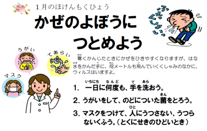 来週から、手洗い・うがい強調週間が始まりますが、ご家庭でも予防につとめてください。