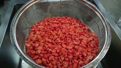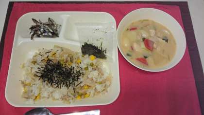 今日は正月の行事献立でした。ぞう煮は金時にんじん・白玉もちを使用し白みそのぞう煮でした。