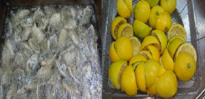 あじのレモンマリネは生のレモンの果汁をしぼり使用しています。
