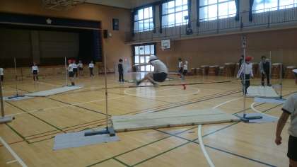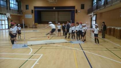 体育科の『走り高跳び』の学習を行いました。自分や友達の動きから高く跳び越えるコツを見つけ、それを生かして練習に取り組みました。
