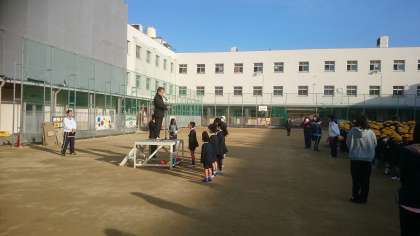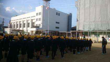 まず「障がいのある子どもに学ぶ図工展」の表彰がありました。とても寒い中の朝会でしたが、静かに話を聞くことができました。
