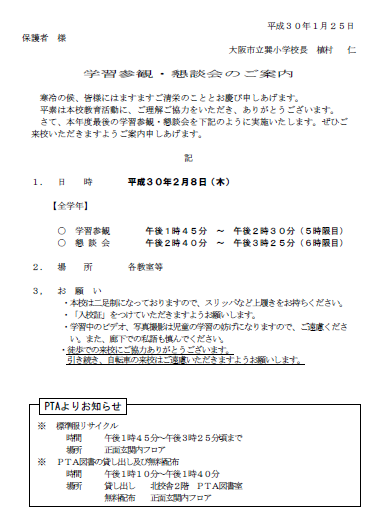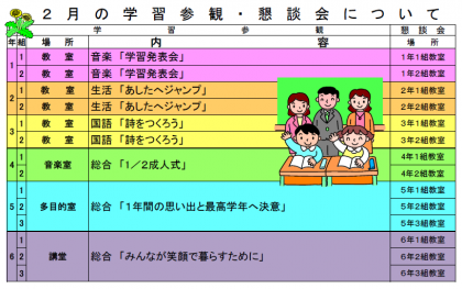 2月8日(木)は今年度、最後の学習参観・懇談会です。たくさんのご来校、お待ちしています。
