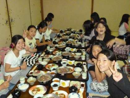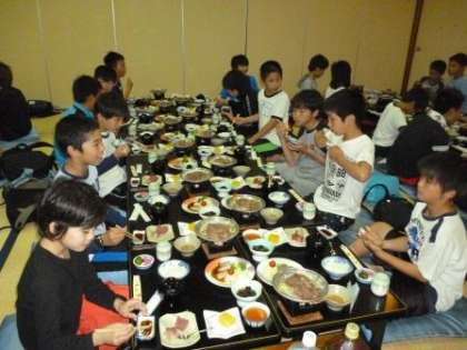 宿舎に到着しました。豪華な夕食です。おいしそうですね。