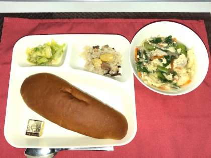 今日の卵スープは(卵)個別対応献立でした。コッペパンにはバターがつきました。