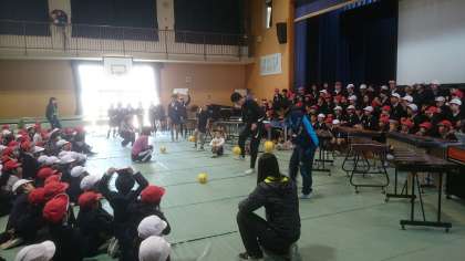 6年生が芸能人のモノマネをしたり、リフティングをしたりして、会場は大盛り上がりでした。