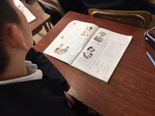 道徳の学習の様子です。「携帯電話の落としあな」という教材を使って、情報モラルについて学習しました。