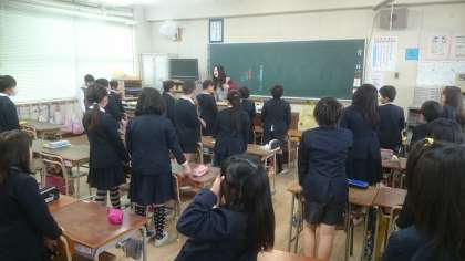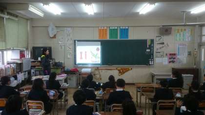 今日は、3年生が元気にアルファベットの発音練習に取り組んでいる様子です。