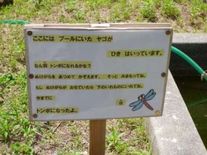 捕まえたやごを職員室の裏の池に放しました。全部で、183匹いました。