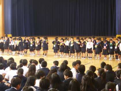 来週の児童朝会から、2年生から6年生と同じようにいっしょに参加します。