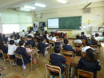 子ども達は、楽しそうにアルファベットを発音したり、手をたたきながらリズムをとったりしていました。