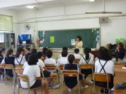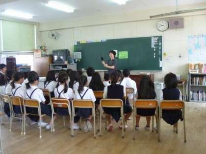 5年生のおはなし会の様子です。静かに聞き入っていました。