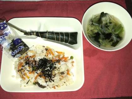 今日はこどもの日の行事献立で、年に1回のちまきでした。