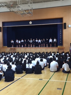 今日の児童集会は、4〜6年生の前期の代表委員になったメンバーが自己紹介をする集会でした。