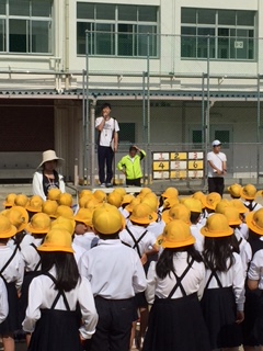 今日の全校朝会では、校長先生から「読書週間」と「避難訓練」についてお話がありました。また、担当の先生からは、学校を美しくするそうじの仕方や昼休みの図書館開放、きまりのある生活についてのお話がありました。1年生から6年生までの子ども達は、きちんと整列して、静かにお話を聞いていました。