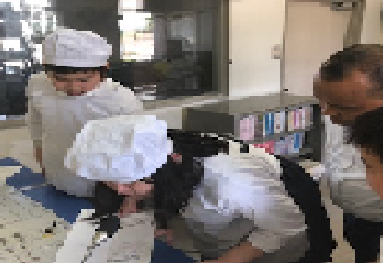 今日はC-NETのバイラ先生が来校の日なので給食のメニューを児童が英語で放送する日です。バイラ先生に発音等を習って本番に挑みました。緊張しながらも上手にメニューを紹介し、バイラ先生から「very good」と褒めていただいていました。