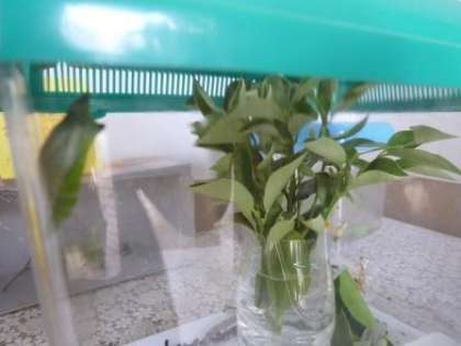 校長室の前にアゲハチョウのさなぎがいます。毎日のように子どもたちが観察しています。その中の1匹が今日の朝、アゲハになって飛び立ちました。