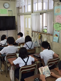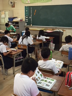 今日は、読書タイムの日です。3年生から6年生までの子ども達は、図書館や学級文庫などで借りた本を静かに読んでいました。物語や歴史の本、図鑑など様々な本を選んでいました。