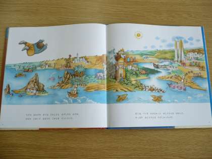 戦争で故郷を追われたぼくたち家族。食料調達にでかけたおとうさんは、パンを買わずに大きな地図を買ってきました。お腹をすかせたぼくは心の中でおとうさんをなじりますが、壁一面に広げたその地図を眺めるうち、想像の翼を広げて世界各地を巡るようになるのでした。作者の体験をもとに書かれたお話です。