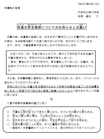 児童の安全確保について H30.6.19