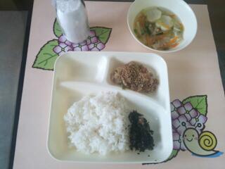 のりのつくだ煮はかつおぶしとしいたけときざみのりを甘辛く煮つめてつくっています。ご飯のよこに添えていただきました。