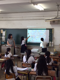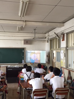 高学年の子ども達は、映像を見ながら英語でのお話を聞き取る学習をしたり、簡単な会話文を使って友達どうしでコミュニケーションをとったりしていました。