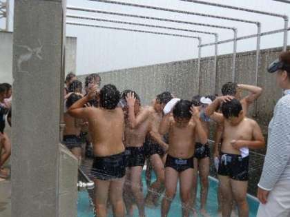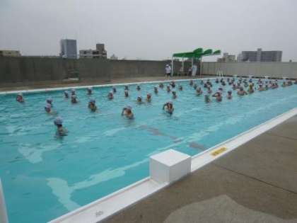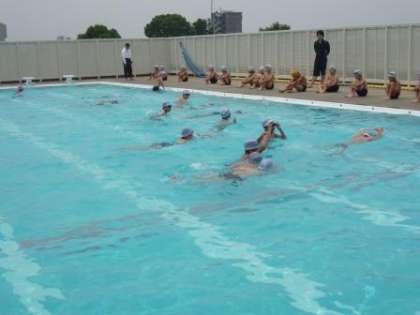 4年生の様子です。もぐったり、浮いたりする練習をしてから、けのびでできるだけ遠くまで泳ぎました。その後、バタ足の練習もしました。