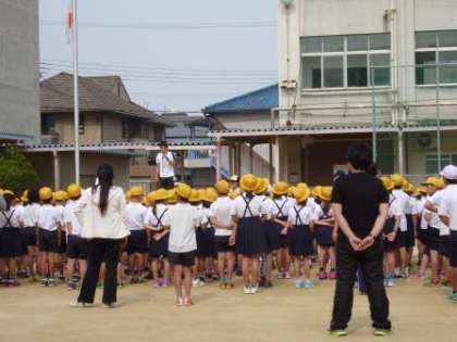 朝会で桑山先生から、プール学習についての話がありました。プールに入るときの約束を守ること、しっかり先生の話を聞くことなどを話されました。