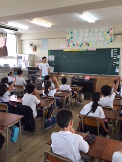 子ども達は、1学期学習してきた英語の言葉を思い出して発表していました。上手に英語の言葉を発表した人は、担任の先生からシールをもらっていました。子ども達の顔から笑顔がこぼれていました。