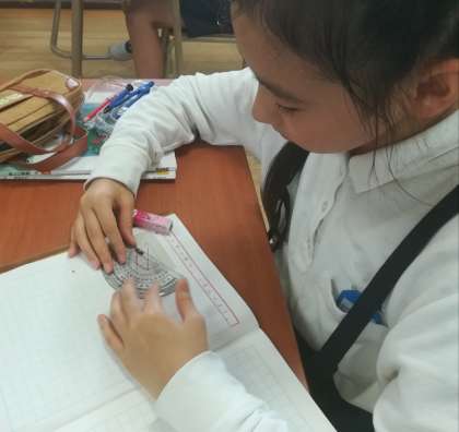 「四角形を調べよう」の単元を学習しています。四辺がすべて等しいのは、正方形で知っているけれど、新たに学ぶ「ひし形」は、少し形が違うような・・・分度器やコンパスを使って、ひし形の特徴を探していきます。学習の終わりには、自分のノートに作図しました。