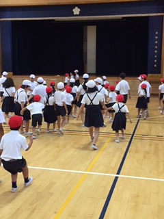 1年生と6年生が、手をつなぎながら動いたり止まったりして、楽しく活動していました。