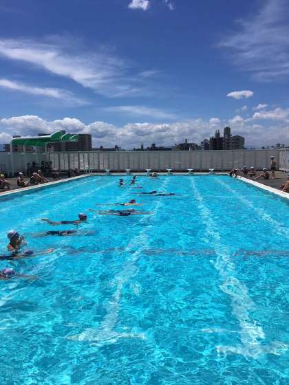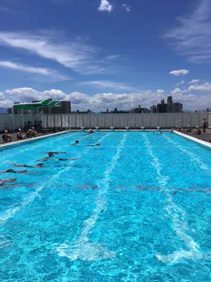 久しぶりの青空の下、子どもたちは元気にプール水泳を楽しんでいます。