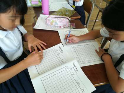 7月4日(水)の様子です。3年生、5年生、6年生にとっては、1学期最後の放課後学習となりました。宿題を終えた後は、プリント学習をしています。100マス計算で、数字を自由に入れて計算します。