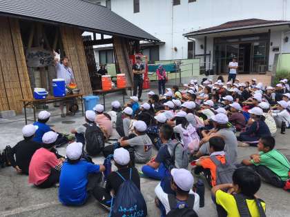 飯盒炊さん、カレーづくりの説明を真剣に聞いています。