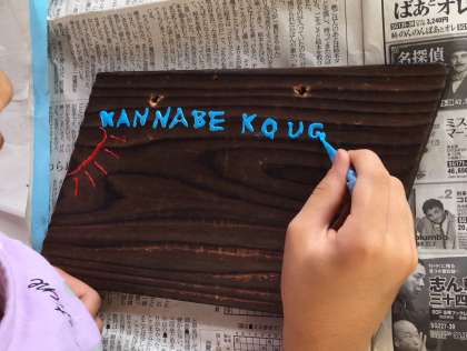焼き板を磨き、アルスカラーで絵付けしていきます。
