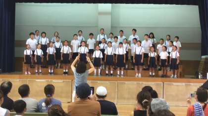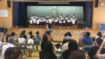 音楽室にて練習した後、今日は保護者の方々に来ていただき、講堂で発表会を開きました。