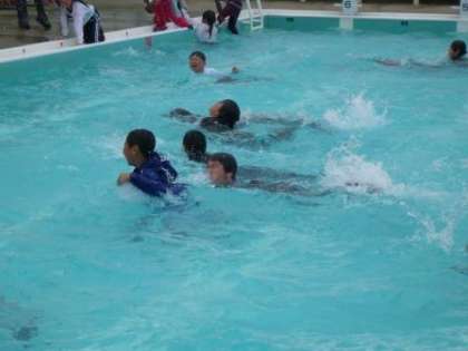 今日は、4年生が着衣泳を体験しました。手足が思うように動かない等水着との違いを実感する事ができました。