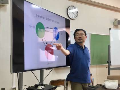 テーマは「深い学びをひらく説明的文章の学習指導の開発」です。実際に教材文を読みながら教材文分析や指導展開のデザインについて指導いただきました。