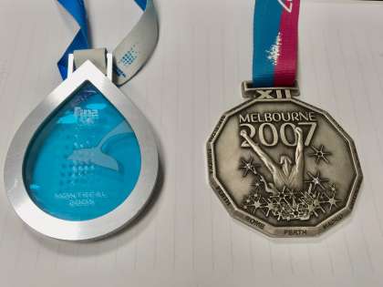 2005年 世界水泳モントリオール大会(左)と、2007年 世界水泳メルボルン大会(右)のそれぞれ銀メダル。