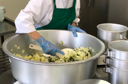 8月・9月・10月は食物アレルギー対応サポート月間となっておりチキンカレーライスのカレーは小麦粉不使用の米粉カレーのルゥを使用しています。