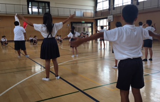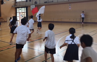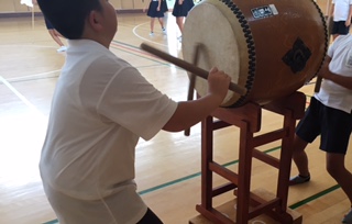 応援団の練習の様子です。昼休みに講堂で練習しています。