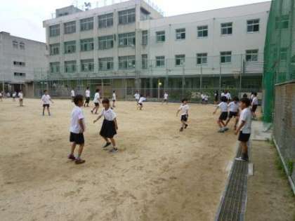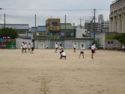 梅雨の合間の晴れの日には、運動場で元気いっぱい遊んでいます。ボールを使った遊びをする子ども達が多いです。