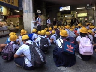 久宝寺緑地まで出かけます。鶴橋で乗り換えの電車待ちです。