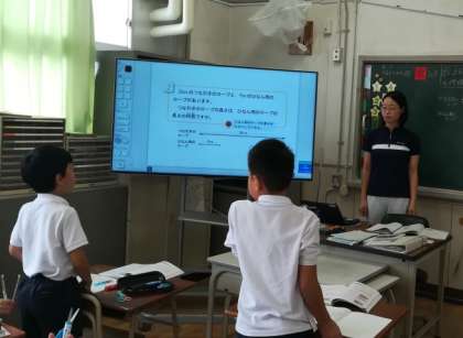 「かけ算のしかたを考えよう」の単元を学習しています。文章題で、なぜわり算の式を用いるかの理由をペアになって話し合いました。写真は、その発表をしている様子です。文章題の中にわり算を導くキーワードを見つけるなど、様々な視点から「わり算」を考えるいい機会になりました。