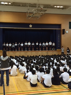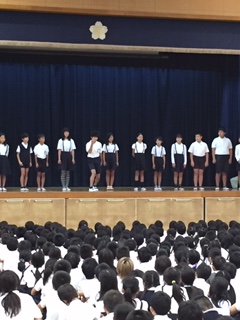 今日の朝は、全学年による「児童集会」がありました。後期児童会のメンバーの紹介です。子ども達は一人一人、はきはきとした声で決意表明をし、まわりから大きな拍手をもらっていました。とても気持ちの良い集会でした。